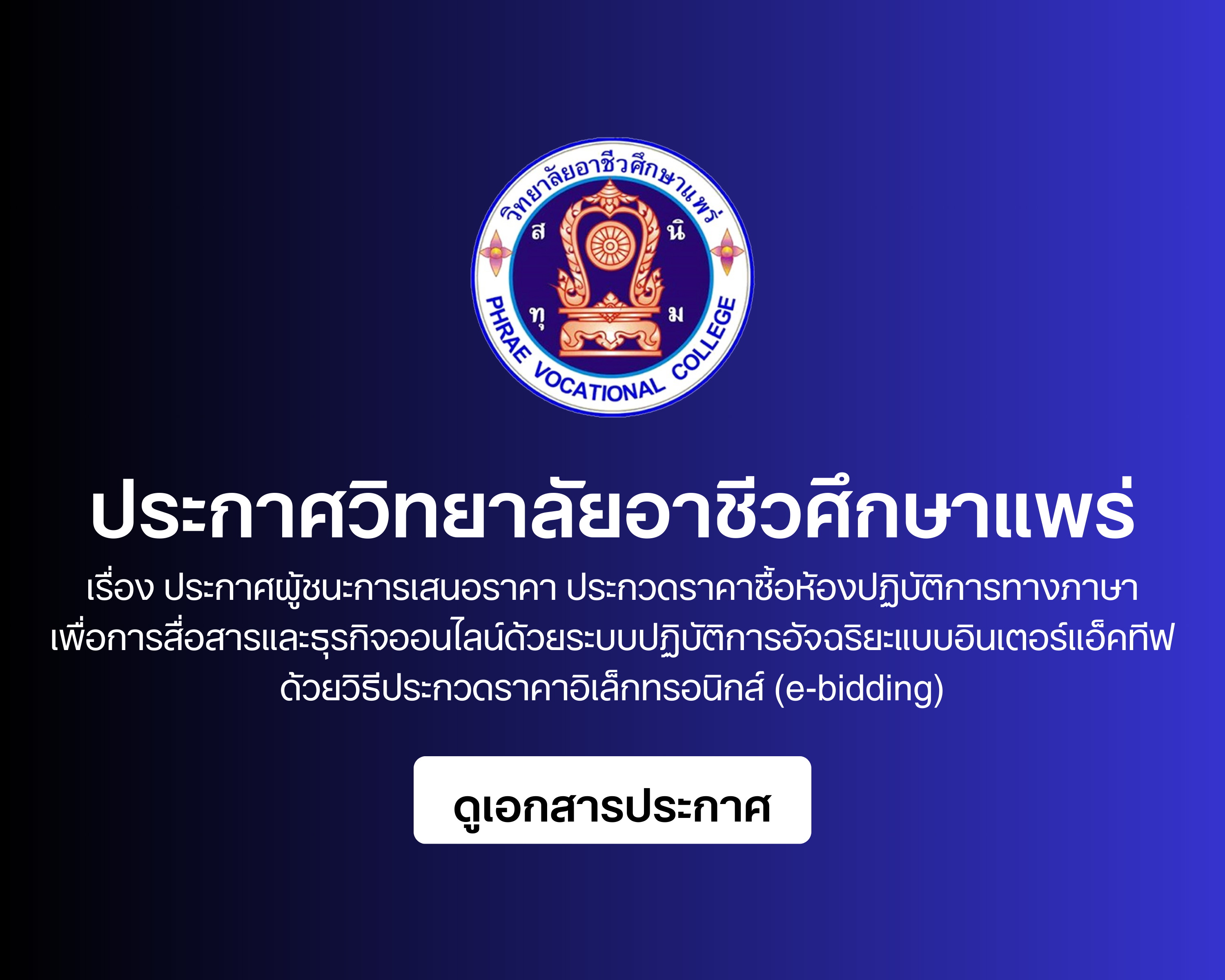 วิทยาลัยอาชีวศึกษาแพร่ 4 ถนน ยันตรกิจโกศล ตำบล ในเวียง อำเภอเมืองแพร่ จังหวัดแพร่ 54000 โทร. 054 511 286 E-mail : saraban-phrae@pvc.ac.th