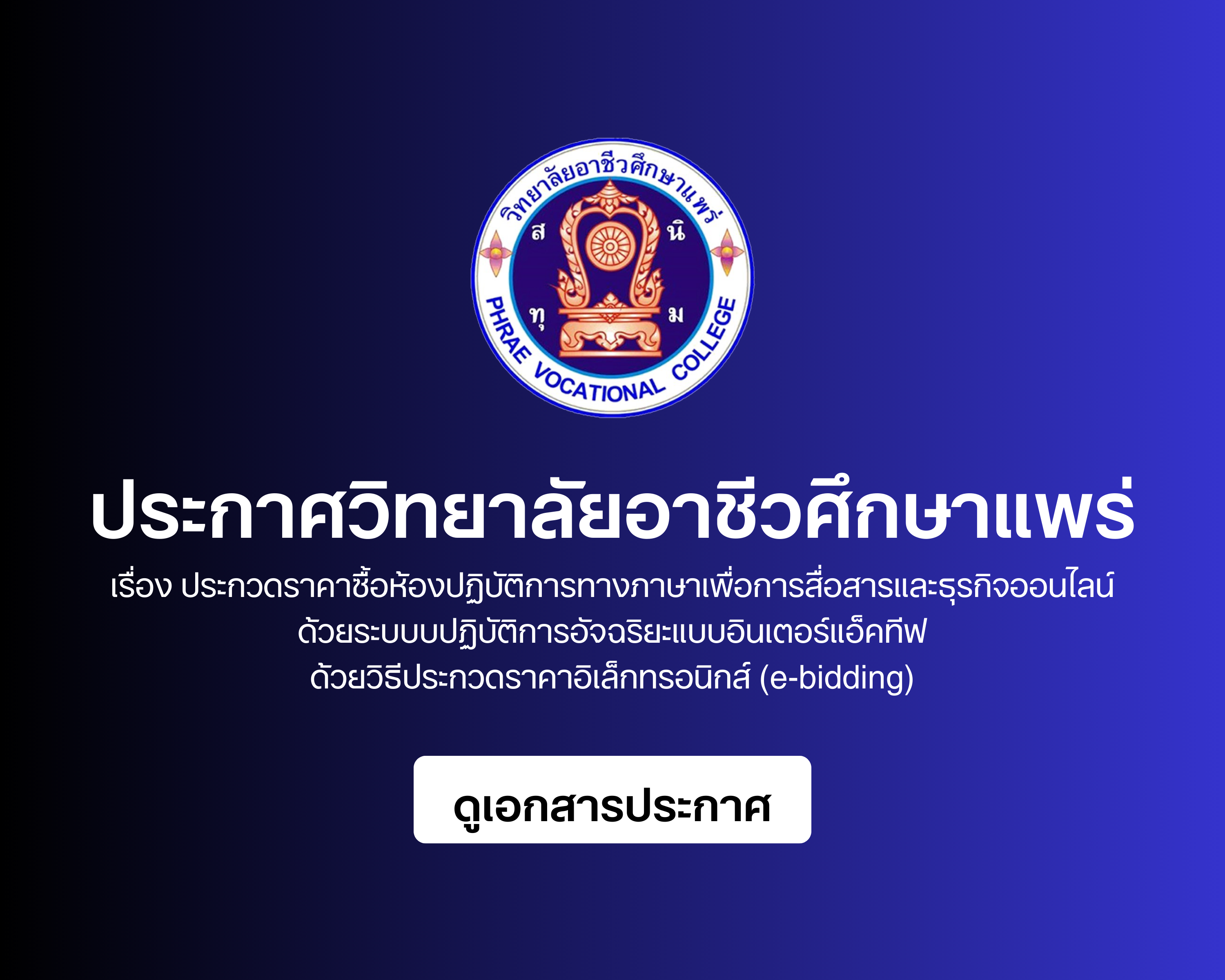 วิทยาลัยอาชีวศึกษาแพร่ 4 ถนน ยันตรกิจโกศล ตำบล ในเวียง อำเภอเมืองแพร่ จังหวัดแพร่ 54000 โทร. 054 511 286 E-mail : saraban-phrae@pvc.ac.th